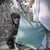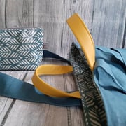 Beschichtete Leinen mint, Kunstledergriffe, Innenstoff & Aussentasche Wachstuch Blätter mint, doppeltes Innenfach, offenes Aussenfach mit Magnetverschluss, abnehmbarer, verstellbarer Tragegurt, welcher die Tasche zum Rucksack, Schulterbag oder CrossbodyBag umfunktioniert. (Krimskramstäschchen im Lieferumfang nicht enthalten, zusätzl. 25.-)